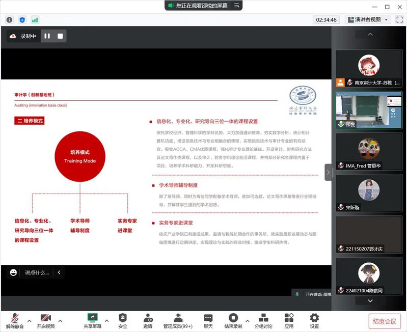 云顶国际yd222线路检测中心CPA审计系主任许娟娟对审计学专业(创新基地班)的办学背景、培养模式、课程设计、开展活动、团队配备等进行了详细介绍。