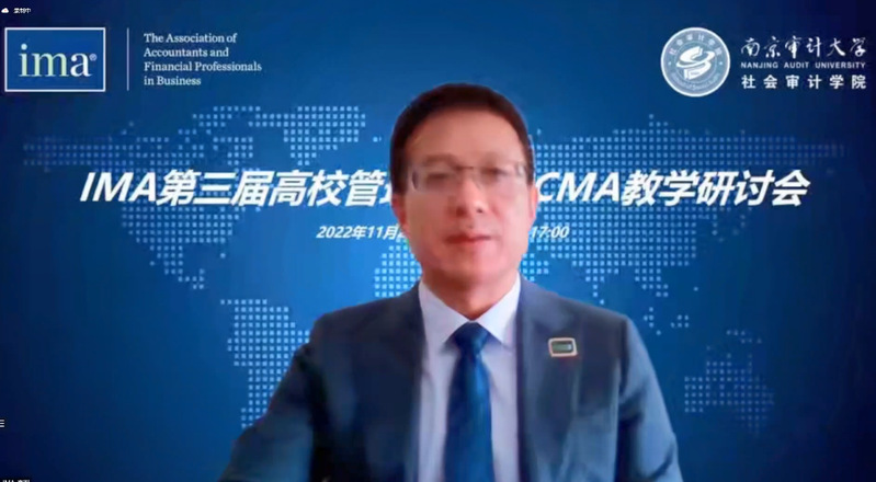 大会伊始,陈骏代表公司向会议致辞。他回顾了南审与IMA协会合作建设CMA项目的历程,介绍了南审的特色化办学项目和取得的重要成果,强调了在新时代培养兼具家国情怀和国际视野人才的重要性。