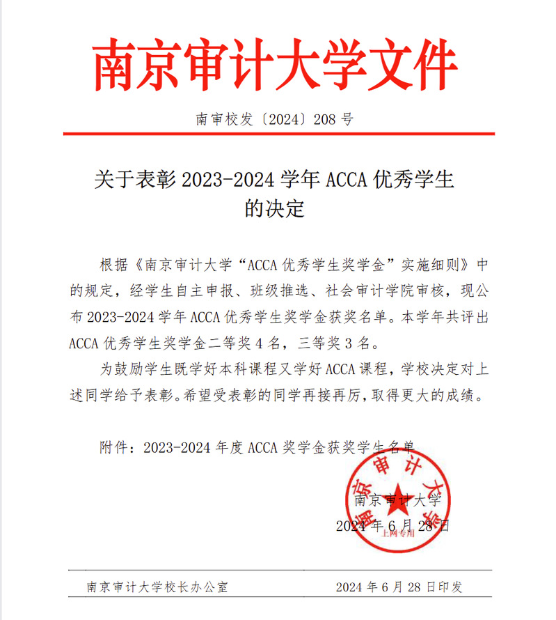 关于表彰 2023-2024 学年 ACCA 优秀员工的决定