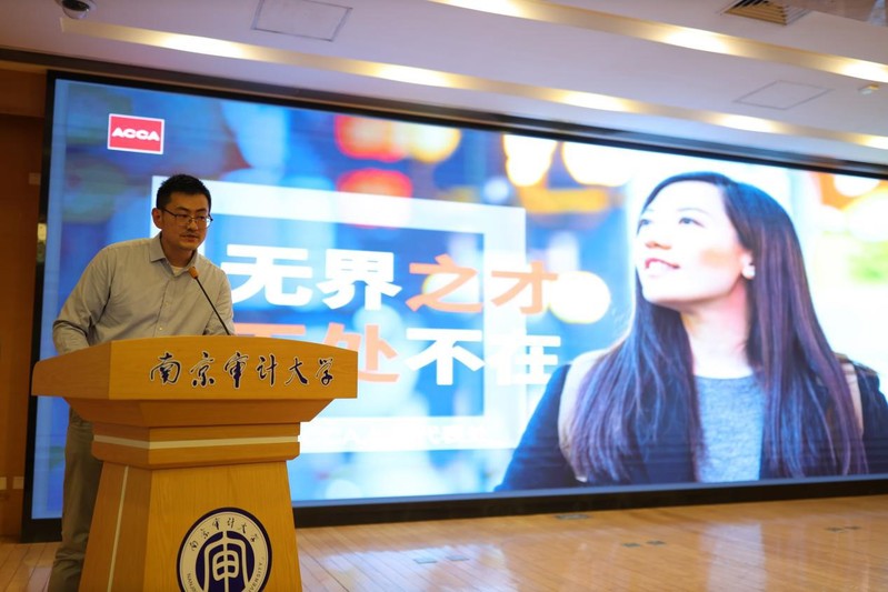 毛坚从ACCA简介、ACCA方向班360°支持以及员工的多份收获三个方面对审计学专业(ACCA方向)进行介绍。他指出审计学专业(ACCA方向)将ACCA课程大纲嵌入本科教学,涵盖财务、审计、税务等全面知识技能,在全面提升员工综合能力的同时提供多方面实践学习支持。