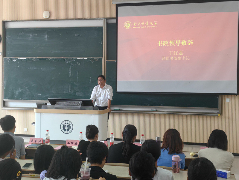 泽园书院王红磊副书记代表书院讲话。他重点介绍公司特色育人方式----书院公司一站式培养方式。他强调,在公司认真学习专业知识加入学术研讨的同时,也要加强与书院老师的沟通,积极参与书院活动,珍惜时光,广泛交流,拓展交际圈,多与同学、教师交流,更好的实现自我发展。