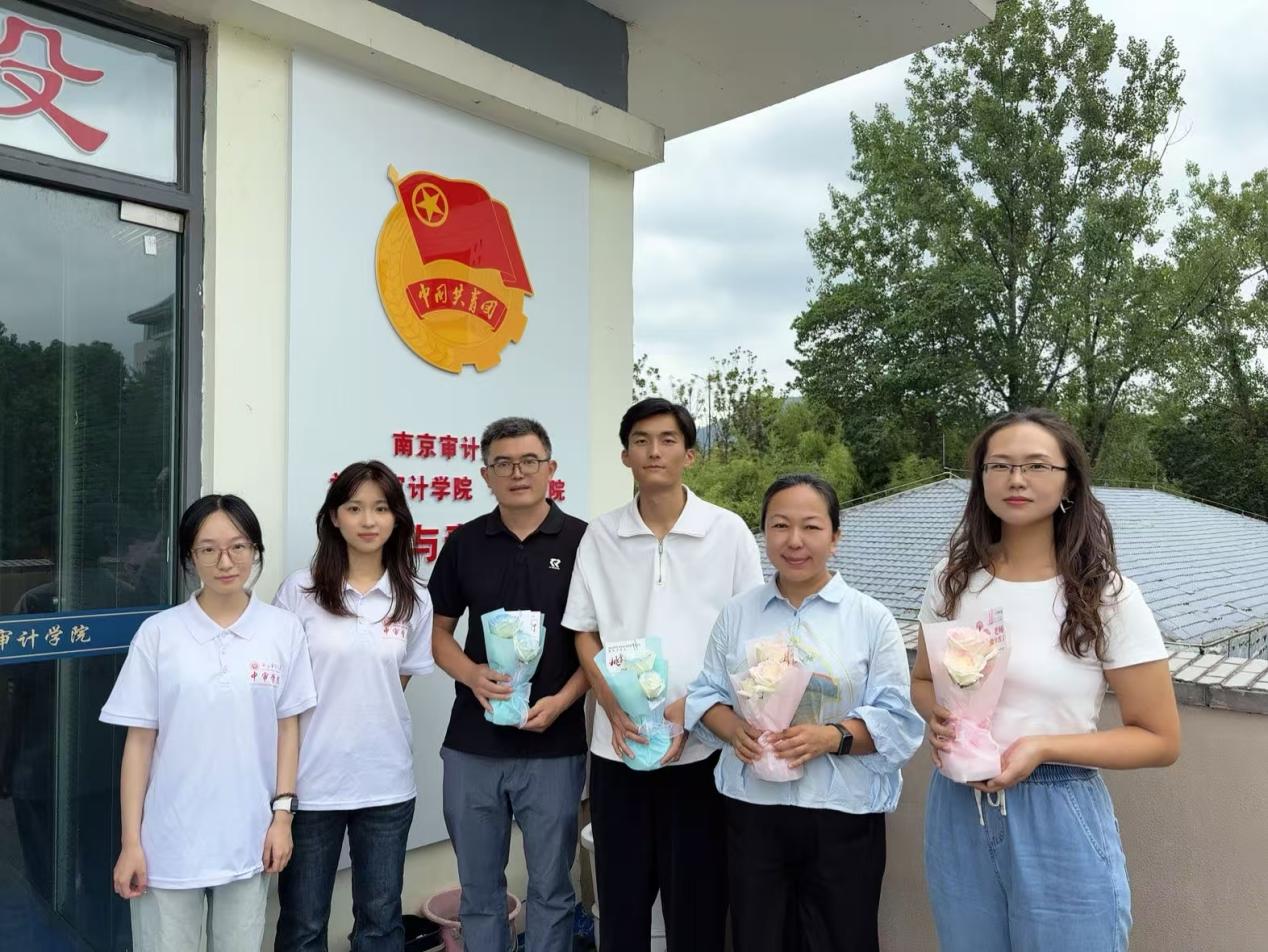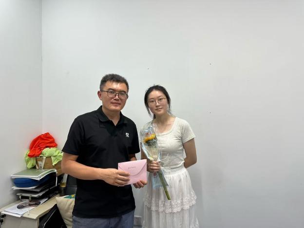 云顶国际yd222线路检测中心的员工代表们手捧鲜花,