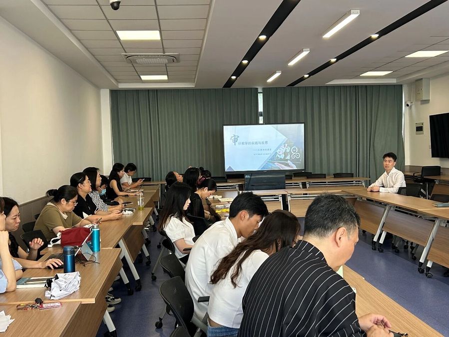 在随后开始的专题分享会上,周敏李副教授指出,审计教学需主动对接行业实践与数字化变革趋势,将前沿理论研究成果与实战需求紧密结合,他围绕课程定位、学情分析、教学方法三大核心维度展开深度阐述。他强调审计专业课程必须立足“为国家和人民服务”的根本导向,立足中国审计实践,融入中国审计学自主知识,既强化员工的专业技能训练,又培育其社会责任感与使命担当。在教学方法创新方面,他主张打破“理论先讲、案例后补”的传统模式,采用“案例研讨先行、理论提炼跟进”的反转教学法,充分调动员工的主动思考与课堂参与积极性;并积极运用AI工具、虚拟仿真技术,建设多学科融合的虚实结合教学资源库,探索开展项目对弈、任务探究和验证式等互动教学方法,围绕员工复杂场景问题解决能力培养,优化教学评价机制。