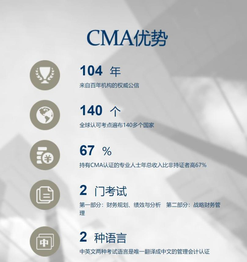 答:通过2门CMA统考是获得CMA认证的前置条件之一,除此之外,还需要:加入IMA协会并支付CMA考生年费、获得协会认可的学历学位、连续两年的管理会计或财务管理领域全职工作经验等条件,详见IMA官网www.imachina.org.cn说明。