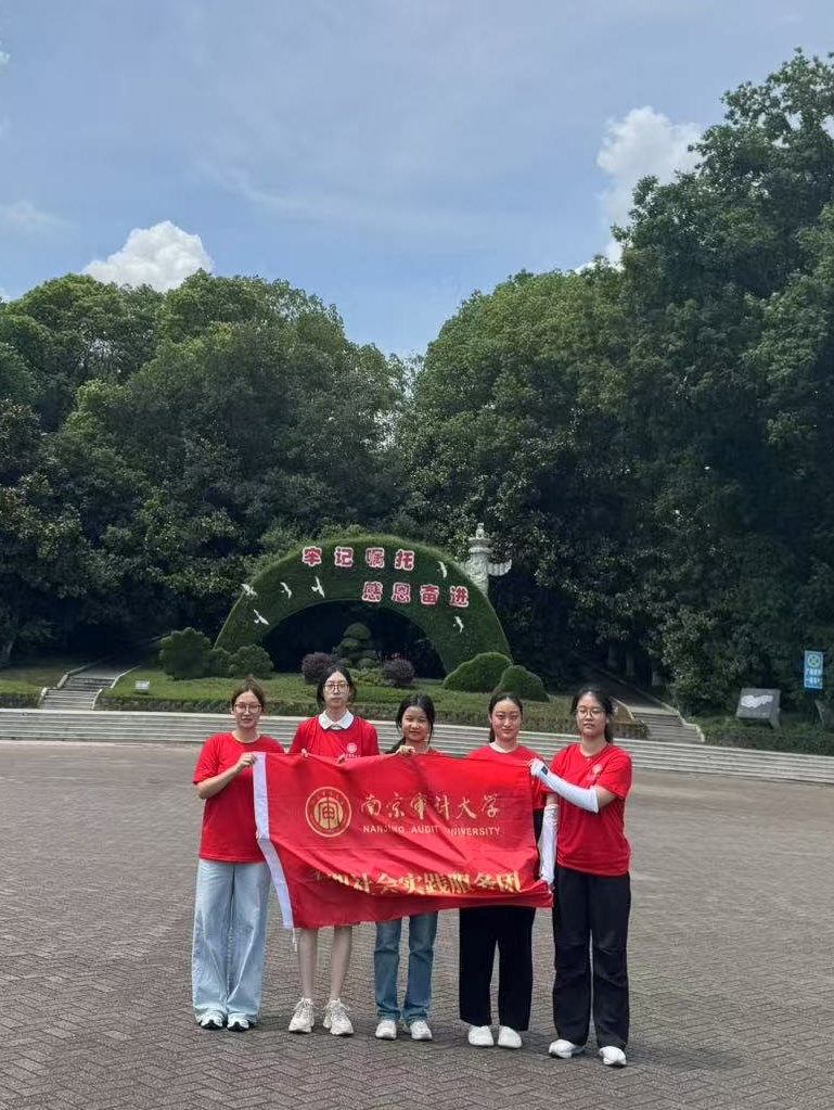 7月5日清晨,“丹心筑梦”实践团的队员们来到雨花台烈士陵园,在苍松翠柏间仰望巍峨矗立的烈士纪念碑,集体静默缅怀后,有序进入纪念馆参观。队员们在恽代英狱中手稿展柜前久久伫立,认真研读那穿越近百年时光依然滚烫的铿锵字句;在邓中夏的生平展区,通过影像资料与实物陈列,了解其视死如归的革命历程。实践过程中,队员们细致观察先烈们带着补丁的衣物、磨得发亮的钢笔、泛黄发脆的纸张,听讲解员讲述这些物品背后坚守信仰的故事,并不时相互交流感受。通过这场沉浸式实践,实践团的队员们深刻认识到,先烈们在至暗时刻点燃自己照亮民族解放之路的担当,恰是审计工作中面对风险挑战时,所需要的坚守原则的定力与捍卫公平的勇气。