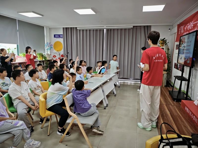 线下,队员们走进社区和中小学,开展“红色故事会”活动。7月25日运河花苑社区第九届心蕾创造营暑托班上,队员乔婧和晏睿涵结合团队研学成果讲述三杰故事,让同学们身临其境感受革命先辈的爱国情怀。许多同学踊跃举手,积极表达看法,课堂氛围十分热烈。活动结束后,一位同学说:“原来革命先烈离我们这么近,他们的故事让我明白,青春应该有担当。”