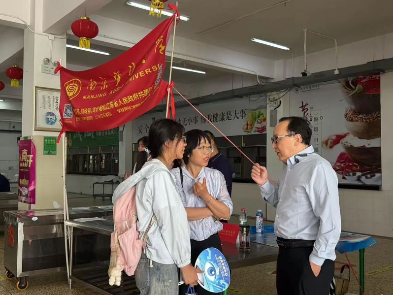 6月25日上午,陈冬华带领招生组老师赴宿迁中学开展招生宣传活动,与员工、家长亲切交流,全面介绍南审的招生政策、录取情况、生涯规划以及特色专业建设成果,作招生咨询相关问题解答。